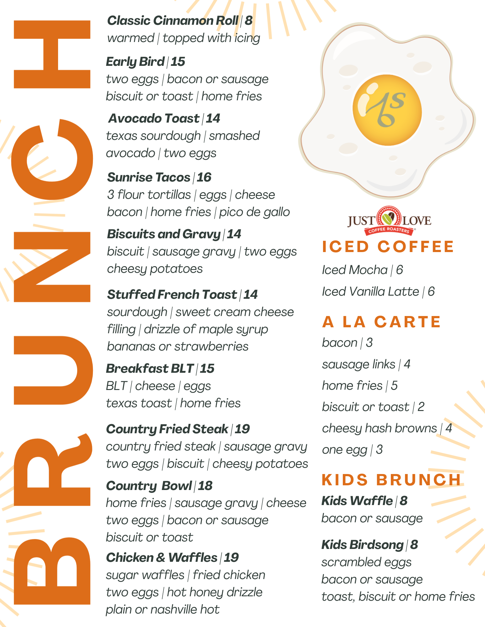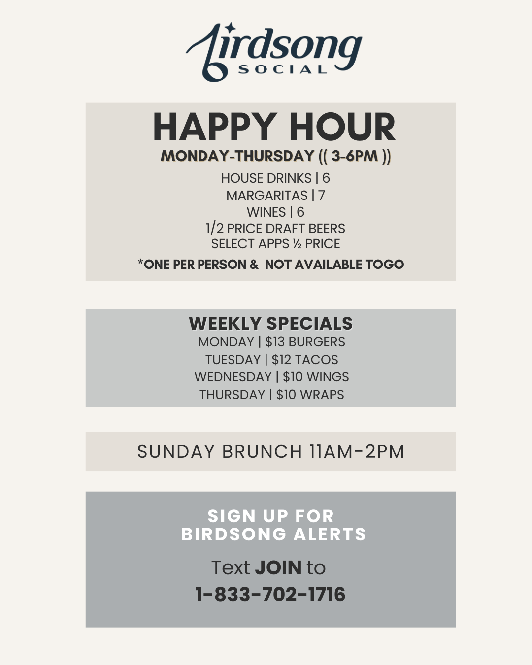 Birdsong Brunch is only available on Sundays from 11 am – 2 pm.
